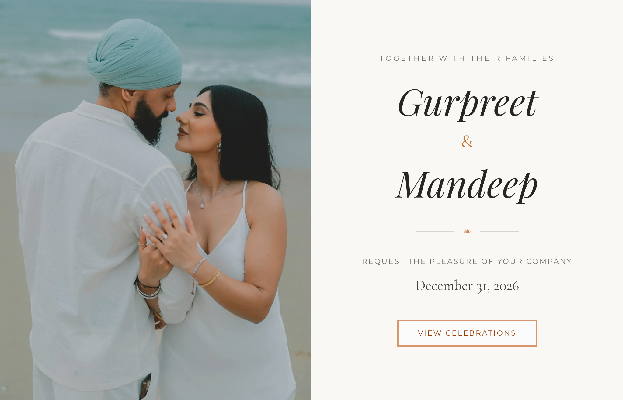 Pick from our collection of templates designed specifically for Punjabi weddings — each one built for celebrations that span multiple days and events.